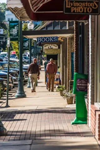 A five-minute drive from Sylva, Dillsboro invites visitors to stroll along the Tuckasegee River and browse century-old storefronts. Stop by Dillsboro Chocolate Factory for handmade sweets before checking in at the Dillsboro Inn, an eco-friendly riverside retreat.