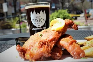Recharge at Gaston Brewing Company, where its beers — traditional IPAs; hazy, New England-style IPAs; crisp lagers; a standout Kölsch; and more — accompany great pub fare such as wings, salads, fish and chips, and a Chicago-style beef sandwich.