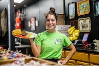 Check out the wide selection of draft and bottled craft beers at J-Bird's Deli & Ales, where locals love the family-friendly atmosphere and scratch-made food. Black bean hummus, served with tortilla chips and pico de gallo, makes a great snack. But the stacked sandwiches can satisfy bigger appetites.