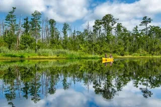 Return to the refuge in the morning for one of three paddling options: The Sandy Ridge Loop (1.5 miles); the Sawyer Lake paddle (2 miles) for a short, immersive experience; or the Milltail Creek route, where you can paddle upstream (5.5 miles) or downstream to the Alligator River (4 miles), keeping an eye out for gators sunning on logs. Prefer a guide? Book a tour with Kitty Hawk Kites for an expert-led adventure.