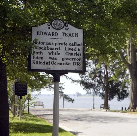 A room at the Bath State Historic Site is dedicated to Blackbeard and his men, many of whom may have been Bath residents. The historic Van der Veer House also has a room dedicated to Blackbeard that includes a graphite vase — rumored to be the famous pirate’s money pot. Accounts say the people of colonial Bath treated their infamous pardoned pirate as somewhat of a celebrity. When Blackbeard and his crew were in town, they threw lavish dinners and wild parties.