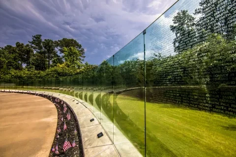 Within the Lejeune Memorial Gardens is also the 9/11 Memorial, featuring a steel beam from the Twin Towers gifted by New York first responders; the expansive Vietnam Memorial, one of the few in the U.S. to include all 58,229 names of those who died; and the Montford Point Marine Memorial, which honors the first African Americans to integrate the Marine Corps during World War II. Together, these monuments offer a profound, contemplative space that pays lasting tribute to courage and dedication.