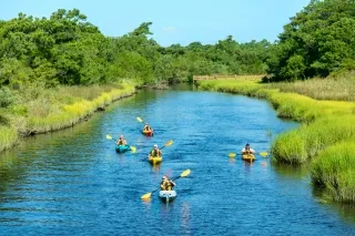 Discover the Inner Banks via sea kayak and face whitewater in inland headwaters. With 200+ miles of river and sound to explore, you’ll want to spend a night or two on screened-in camping platforms as you head downstream. Paddle through Rocky Mount, Tarboro, Greenville and Washington along the way.