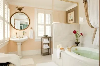 Maybe you need a little separation. As in: from the mainland. The Marsh Harbour Inn on Bald Head Island adds a dash of Shaker simplicity to its compelling cocktail of bright sunlight and gentle sea breeze. Accessible only by ferry, but eminently worth it, you can select a room overlooking the harbor or the Cape Fear seashore. The downstairs sitting room, with its overstuffed furniture, is designed for curling up with a book or your loved one. Your stay comes with the use of a golf cart.