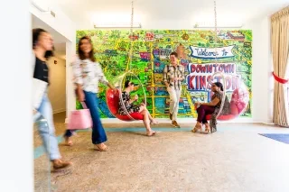 If pop art took the form of a hotel, it would be this throwback delight with Route 66-style neon signage, retro furnishings, and a pool with multicolor lights that glow among the surrounding palm trees and miniature golf course. Reopened in 2017, the motor lodge is just steps away from sister establishment Mother Earth Brewing.