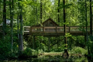 An elevated walkway connects four tree houses nestled along the Cashie River, where the sights and sounds of nature put you in a state of bliss. Each home includes a queen-size sleeping platform, loft, and outdoor gathering area with chairs and benches for basking in the fresh air and views. All the dwellings are ADA-accessible and pet-friendly too. Get a closer look at the river on a kayak or canoe excursion (rentals available), and go hunting and fishing.