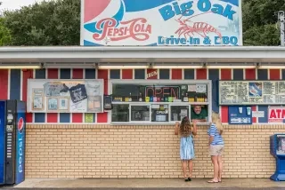Walk-up window lines at Big Oak Drive-In and BBQ in Salter Path can be long, but rest assured their shrimp burger is worth the wait. It’s made with fried shrimp that’s piled high on a steamed bun and topped with tartar sauce, coleslaw and ketchup. Twenty minutes away from Big Oak, El's Drive-In has been serving shrimp burgers to regulars for three generations.