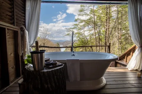 NC’s Great Smoky Mountains offers a scenic romantic retreat with breathtaking landscapes, majestic vista views and charming mountain towns. Make Bryson City your homebase, or up the romance with a stay at Lakeview at Fontana, a soaking cabana resort.