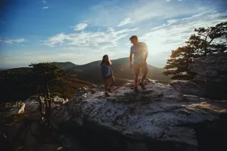Hanging Rock has more than 20 miles of trails that take hikers past waterfalls (Window and Hidden Falls on the 3.6-mile Indian Creek Trail) and to mountaintop outcrops with 360-degree views (the 1.3-mile Hanging Rock Trail, the 4.7-mile Moore’s Wall Loop Trail). Pilot Mountain is known for its start-at-the-top philosophy that gives immediate access to the base of its iconic 200-foot-high pinnacle. The two mountains are linked by the 25-mile Sauratown Trail, part of the statewide Mountains-to-Sea Trail.