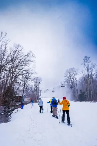 In Beech Mountain, the loftiest town in the eastern United States (sitting at 5,506 feet), visitors can explore 30 miles of maintained trails, and snowshoe rentals are available at the local Buckeye Recreation Center. Novices can warm up on the recreation center’s 1/3-mile loop, while pros can head for the nearly 7 miles of alpine tracks at the Emerald Outback, the town’s picturesque trail park. Tentative snowshoe converts can ease into the sport with a guided tour at Sugar Mountain Resort outside Banner Elk.