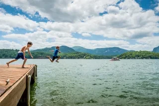 The Rocky Broad River tumbles downward through Hickory Nut Gorge to feed Lake Lure, a 720-acre body of water beautifully surrounded by tree-covered mountain ridges. A favorite of water sport enthusiasts, Lake Lure has a beach and marina where you can swim, boat, sail, canoe, kayak, fish, tube, wake board and ski. When the 1927 Lake Lure Inn & Spa opened, it drew its share of the famous, from F. Scott Fitzgerald to Franklin Roosevelt. But the inn and surrounding area may be best known for the filming of "Dirty Dancing."
