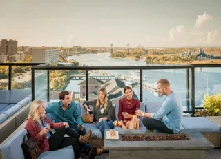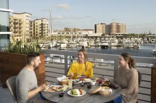 Whether you’re beachside or downtown, choose from a host of vacation rentals and hotels that accommodate any budget or group. Enjoy modern conveniences with a historical backdrop at ARRIVE Wilmington, recognized as a 2024 MICHELIN One Key hotel. After you check in, be sure to grab a cocktail at the courtyard Gazebo Bar and relax by the firepits. Onsite, you’ll find Dram Yard’s intimate dining room, serving elevated Southern cuisine with locally sourced ingredients. (Don’t forget to ask about the elephant that stayed for a day about a century ago!). The rooms — from couple-sized minis to a family-sized loft — are full of natural light and filled with small touches such as bathrobes and Apple TVs. ARRIVE also sits just a few tree-lined blocks from the 2-mile Riverwalk, which meanders along the Cape Fear River. You’ll find shops, galleries, and locally owned restaurants and night spots here.