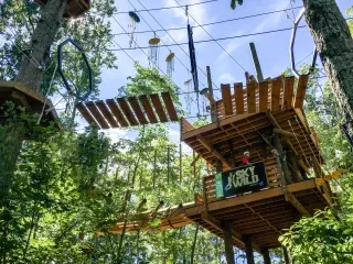 Adventure awaits at a one-stop shop: Greensboro Science Center. Here you’ll find plenty of learning at the aquarium, the zoo, an interactive museum, and a challenging set of aerial obstacles, zip lines and treetop activities. Take your time as you study the monkeys, meerkats, crocodiles and more at the Zoo Trek, then make your way to the Wiseman Aquarium and check out the aquatic life and animals. After that, see what it’s like to roam through the human body, get busy with interactive science exhibits and attempt the challenges at SKYWILD. Shimmy into a harness and climb through obstacles that will take you a few feet off the ground all the way into the treetops. Or get a bird's-eye view of a local park on FLYWAY, the center's new zip line.
