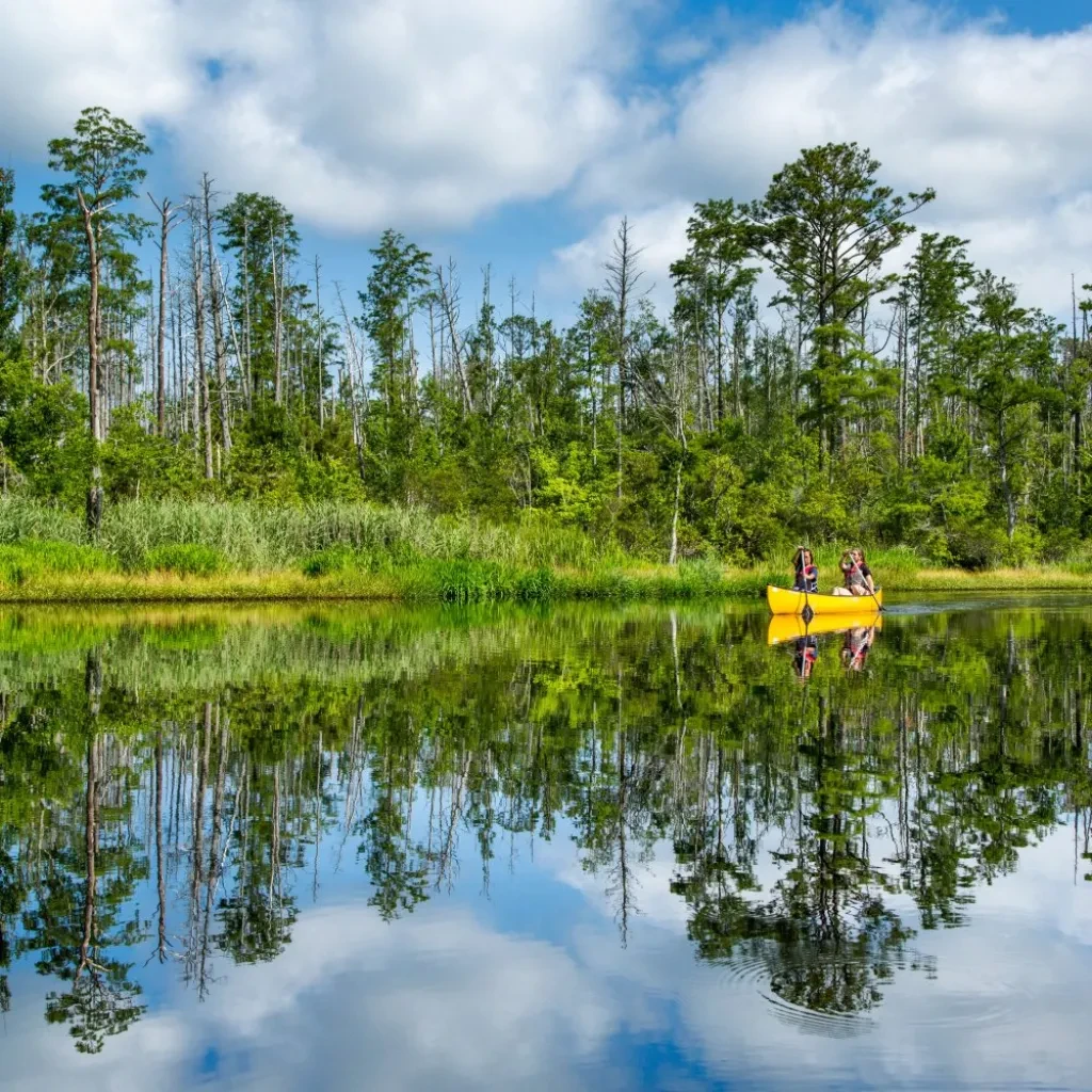 Located on the mainland of Dare and Hyde counties just 15 miles from the Outer Banks, this refuge preserves the pocosin habitat — a special type of wetland — and is a haven for black bears, American alligators, red wolves, waterfowl and other birds. Kayaking or canoeing the creeks here get you close to the wildlife (you may even hear a wolf howling), and hunters and anglers brave the woods throughout the year.