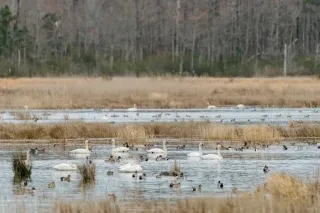 The 110,000-acre Pocosin Lakes National Wildlife Refuge provides the opportunity for visitors and photographers to catch tundra swans, snow geese and ducks, as well as deer, black bear and other wildlife in their habitat. Experience the refuge at the visitors center or on tours to search for bear, birds, wildflowers and more.