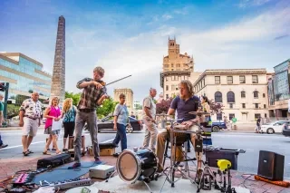 At sundown on Saturdays during the summer, bluegrass pickers, string bands, dancers and other performers assemble in Pack Square Park downtown for Shindig on the Green. Also in Asheville, Jack of the Wood holds jams, the Asheville Event and Dance Centre stages the Blue Ridge Opry dinner show, and The Grey Eagle and other venues include bluegrass in the mix. Down the road in Fletcher, Feed & Seed offers lively performances every weekend.