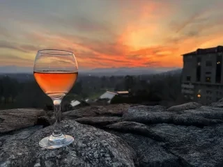 The Omni Grove Park Inn boasts luxurious rooms and multiple restaurants and is consistently recognized as one of the top resort spas in the world. Part of its international acclaim stems from the magnificent, wide-angle view of the Blue Ridge Mountains, best seen from the Sunset Terrace. This tiered, stone, outdoor haven paves the way for a sunset view that rivals Craggy Gardens and other famous sunset spots along the Blue Ridge Parkway. Plus, the Omni Grove doesn’t skimp on quality — anywhere — so expect premium cocktails, gourmet food and impeccable service.
