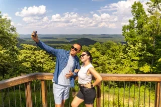 Hanging Rock anchors the east end of the ancient Sauratown Mountains chain; at the west end, some 25 miles distant, sits Pilot Mountain State Park. Pilot Mountain is the most popular climbing destination in the Piedmont, with dozens of one-pitch routes appealing to climbers of varying levels. Fish the Yadkin River, challenge yourself to a hike up to 2,420-foot Big Pinnacle on the 3-mile Grindstone Trail, or circumnavigate the base of the mountain on a 6+-mile hike. Enjoy great views of the Blue Ridge Mountains to the west from the Ledge Springs Trail.