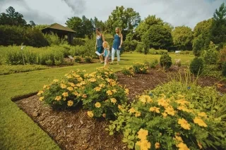 Located a short drive west of Charlotte, Daniel Stowe Conservancy features nearly 400 acres of grounds and themed gardens— including Lost Hollow Children's Garden — sparkling fountains, and a grassy outdoor amphitheater for concerts and other events.