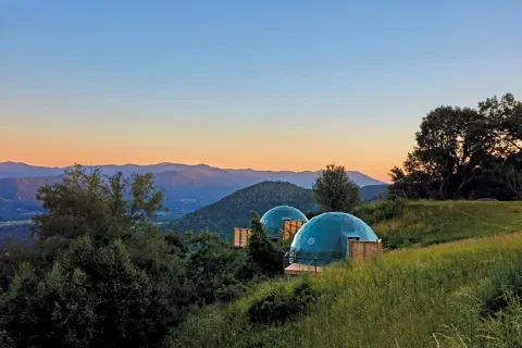 The Glamping Collective offers 10 glass cabins and 16 partially transparent domes, which allow for panoramic views of the Blue Ridge Mountains without stepping outside. But you’ll definitely want to step out to enjoy your private patio and hot tub. Go big with the Ultra Luxe Dome, with 400 square feet of interior space to sprawl out and see the stars from your king bed.