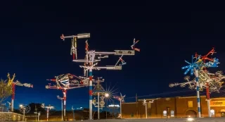 This collection of whirligigs — large, wooden, wind-driven mechanical windmills — brighten the landscape thanks to the late local folk artist Vollis Simpson. The devices incorporate complex movement and sound and are an integral part of more than 30 of Simpson’s works, some of which have been exhibited at the North Carolina Museum of Art in Raleigh and the High Museum of Art in Atlanta.