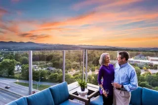 Overlook the Tuckasegee River and take in NC’s Great Smoky Mountains on the rooftop patio at Mountain Layers Brewing.