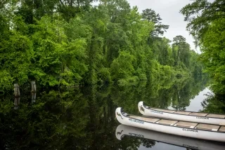 Referred to as "North Carolina's Longest Museum," the 7.5-mile Roanoke Canal Trail connects Roanoke Rapids with nearby Weldon. It follows the towpath of a 200-year-old, hand-dug canal that helped traders avoid the rocky falls on the Roanoke River. As you ride, you’ll be treated to glimpses of the river and remnants of the canal’s history: hand-operated locks, a gravel quarry-turned-pond, an aqueduct and the Weldon Rapids. Bring your bike or borrow one from the Roanoke Canal Museum (for free) and hit the trail. The towpath is nearly level, and the gentle grade makes for an easy morning of pedaling.