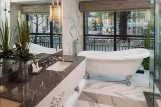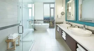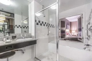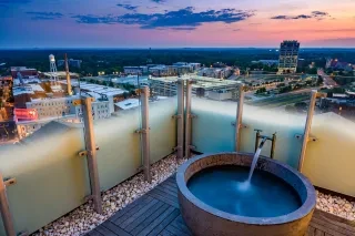 Opened in 2016, the Kimpton Cardinal Hotel transformed the first six floors of the renowned Reynolds Building in downtown Winston-Salem — a building that originated as headquarters of one of the largest tobacco companies in the country and inspired design of the Empire State Building. It seeks to give guests everything they need under one roof — The Katharine brasserie and bar, a “living room” off the main lobby, and the largest fitness center of any Kimpton hotel paired with a recreation room that features a bowling alley and indoor basketball court. Book a King Spa Room or King Suite, where a large soaking tub sits inside a glass-enclosed shower.