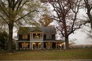 Nestled under 250-year-old oak trees, the Inn at Celebrity Dairy is two buildings in one: a modern Greek Revival farmhouse with wide porches, and the original settler’s 1800 log cabin — and they're joined together by a two-story gathering room. Surrounding outbuildings include the original log hay barn and granary, the 1880s smokehouse, tobacco barns from the 1940s and a goat dairy that produces award-winning cheese.
