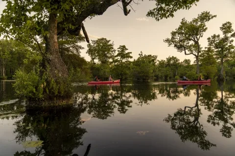 Defined by the Atlantic Ocean, vast sounds and island beaches, the region's easternmost stretch segues to the Inner Coastal Plain with its winding rivers, "bay lakes" and fertile farmland.