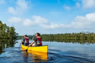 Tucked between rivers and sea, Croatan National Forest is the only true coastal forest in the East. This wild escape is made of pine forest, saltwater estuaries, bogs and pocosins all perfect for paddling, spotting wildlife and strolling peaceful trails.