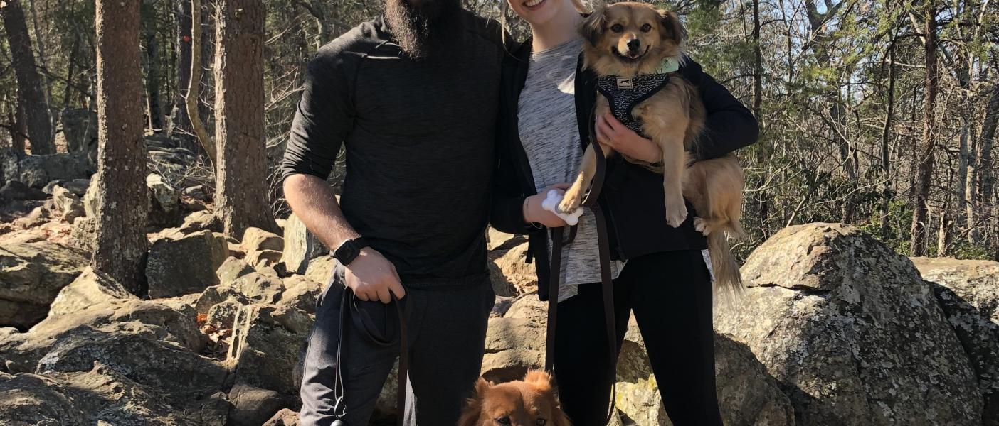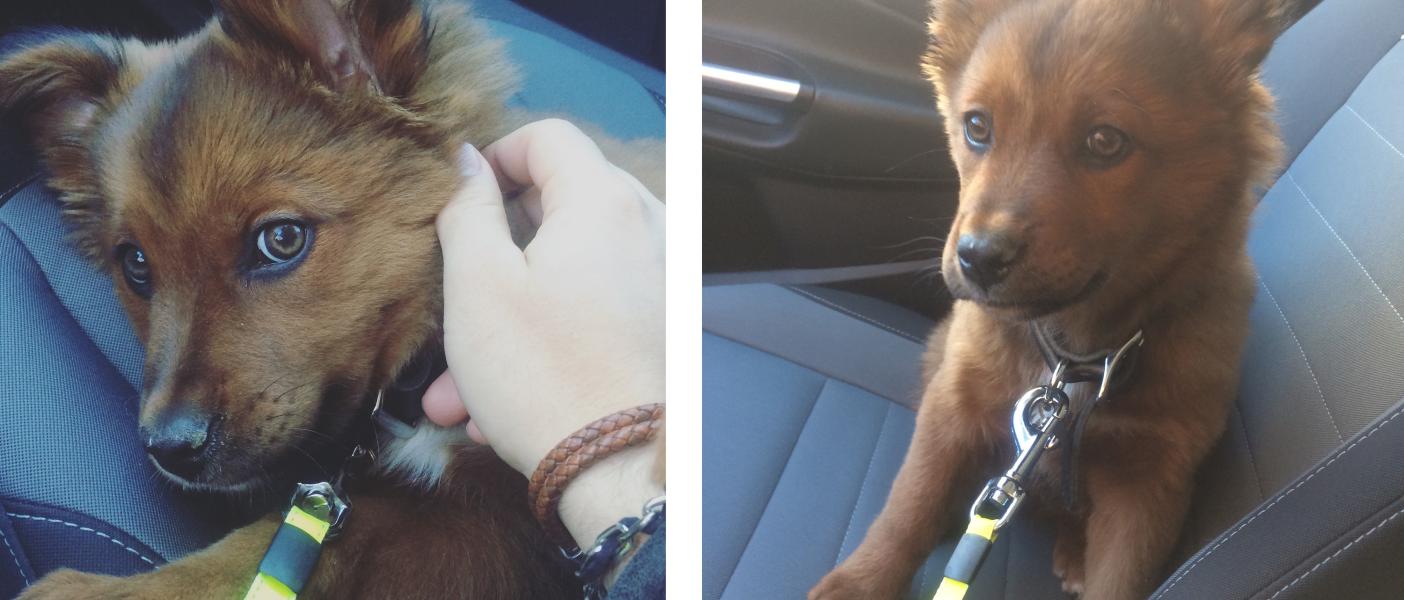 A: After I found my forever home, I spent a lot of my puppyhood following my Dad everywhere he went – to his work, yoga studio, shopping, hiking and all sorts of other places. When I was really smol, I would get so tired on the way up Crowders Mountain that my Dad would carry me part of the way.