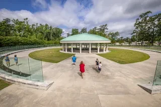 Continue along the path, which is surrounded by brilliant color in spring when the Gardens’ many azaleas bloom. As a part of Jacksonville’s Lejeune Greenway and Trail, the path takes walkers and bicyclists between downtown and Camp Lejeune. Along the way, stop at the small markers honoring Gold Star Mothers, who lost a child in combat, and residents whose land became Camp Lejeune.