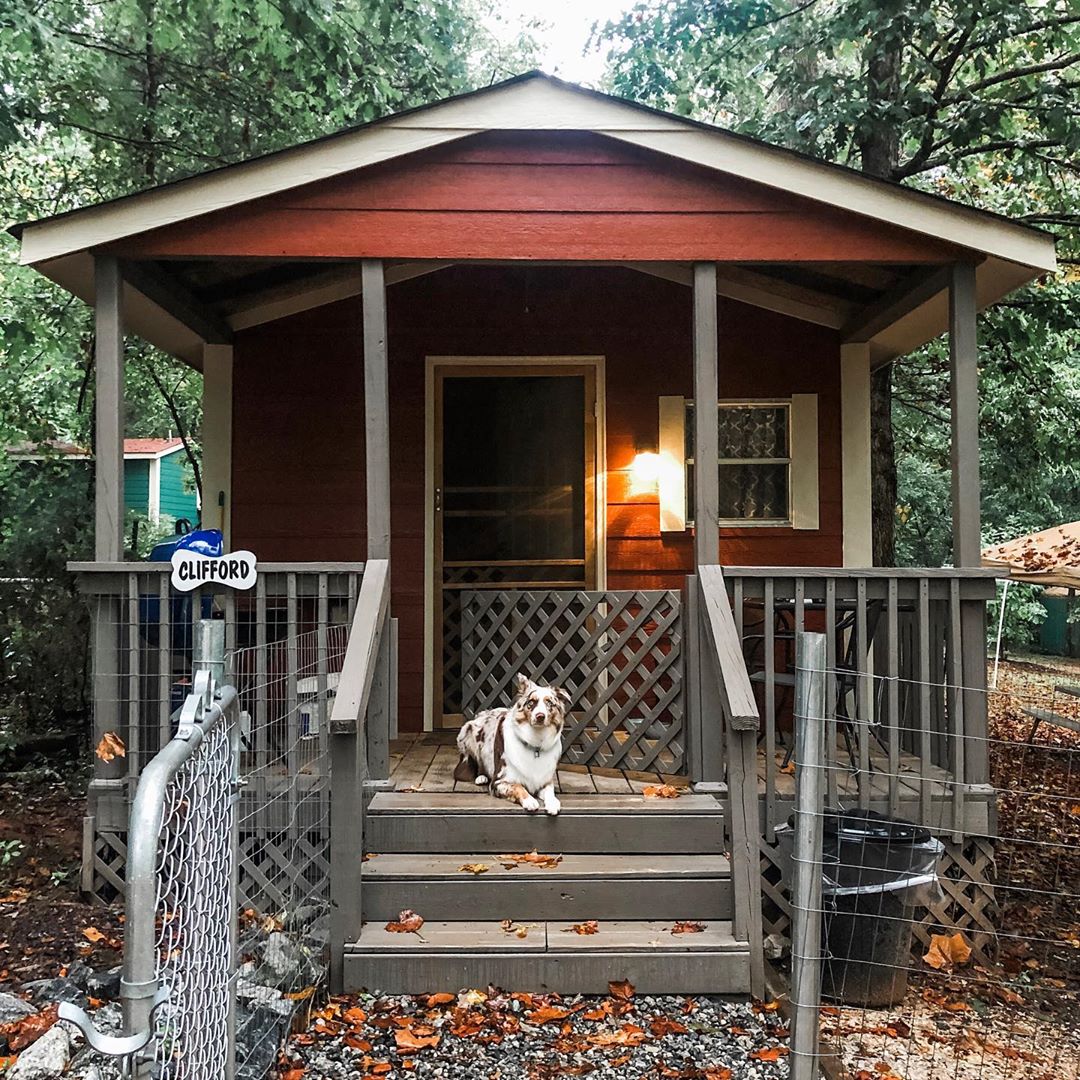 Inside, the accommodations are equally inviting. Each cabin or cottage includes cozy amenities like fireplaces, hot tubs and fully equipped kitchens. Guests are welcome to cover furniture with a towel or blanket, so pets can lounge comfortably right alongside them.