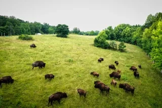 Set against the picturesque hills of Person County, Sunset Buffalo Ridge Farm offers one of the most distinctive animal encounters in North Carolina. This family-owned, 300-acre working bison farm invites visitors to experience a guided safari-style tour, where you can learn about bison behavior, conservation and sustainable farming, all while observing the herd just yards away.